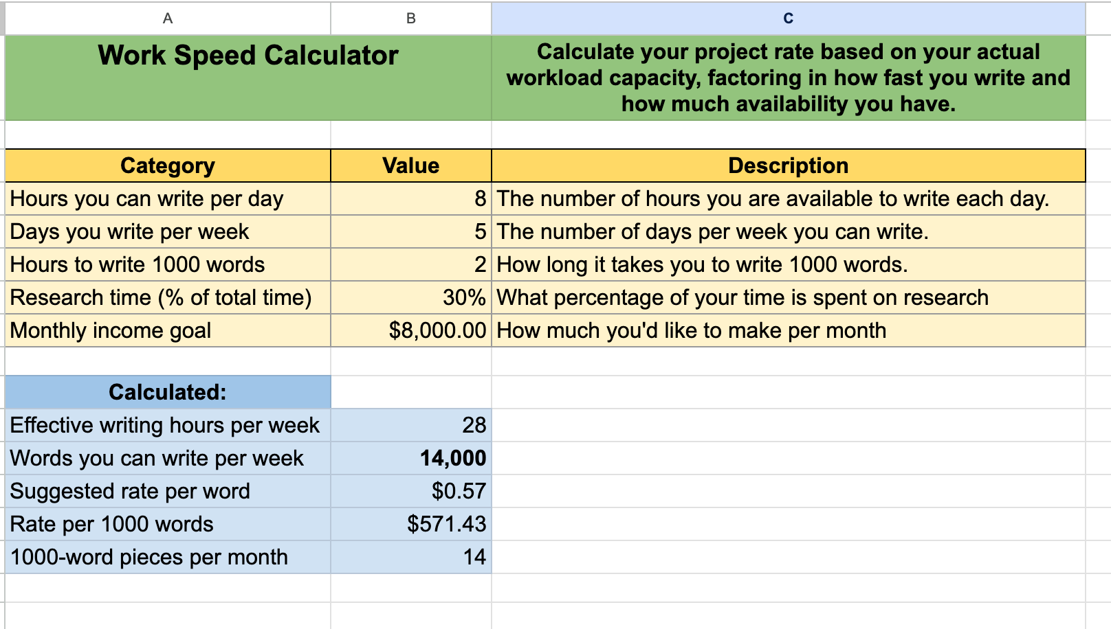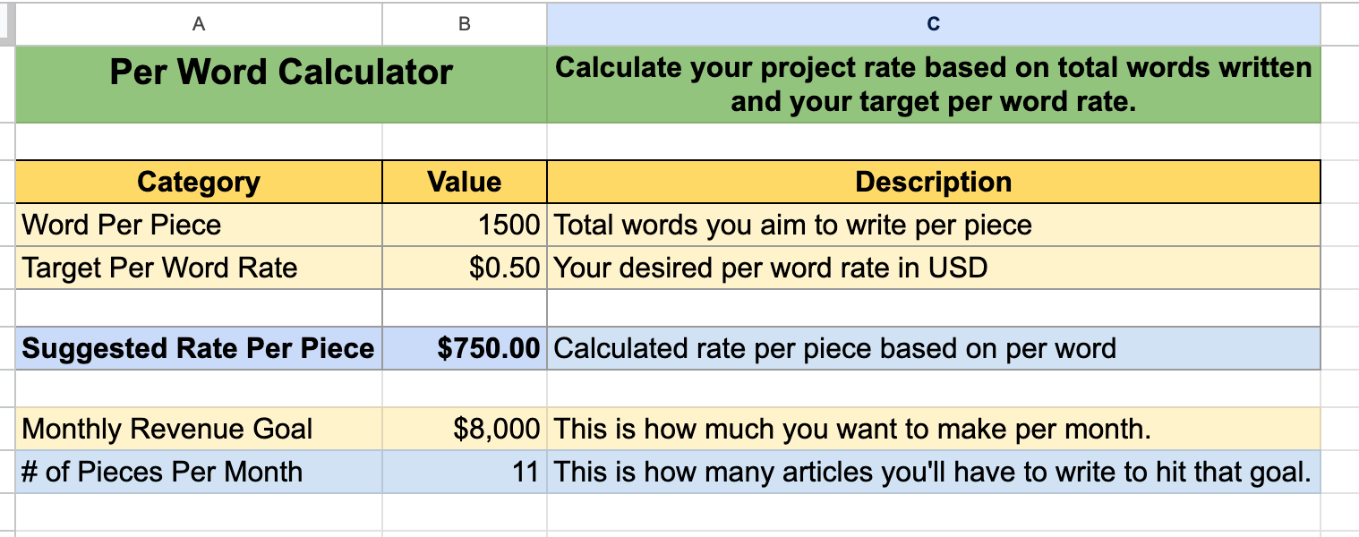 Here's the thing about freelance writing rates: there's no one-size-fits-all solution. That's why this calculator has multiple sheets, each approaching the perplexing pricing puzzle from a different angle: