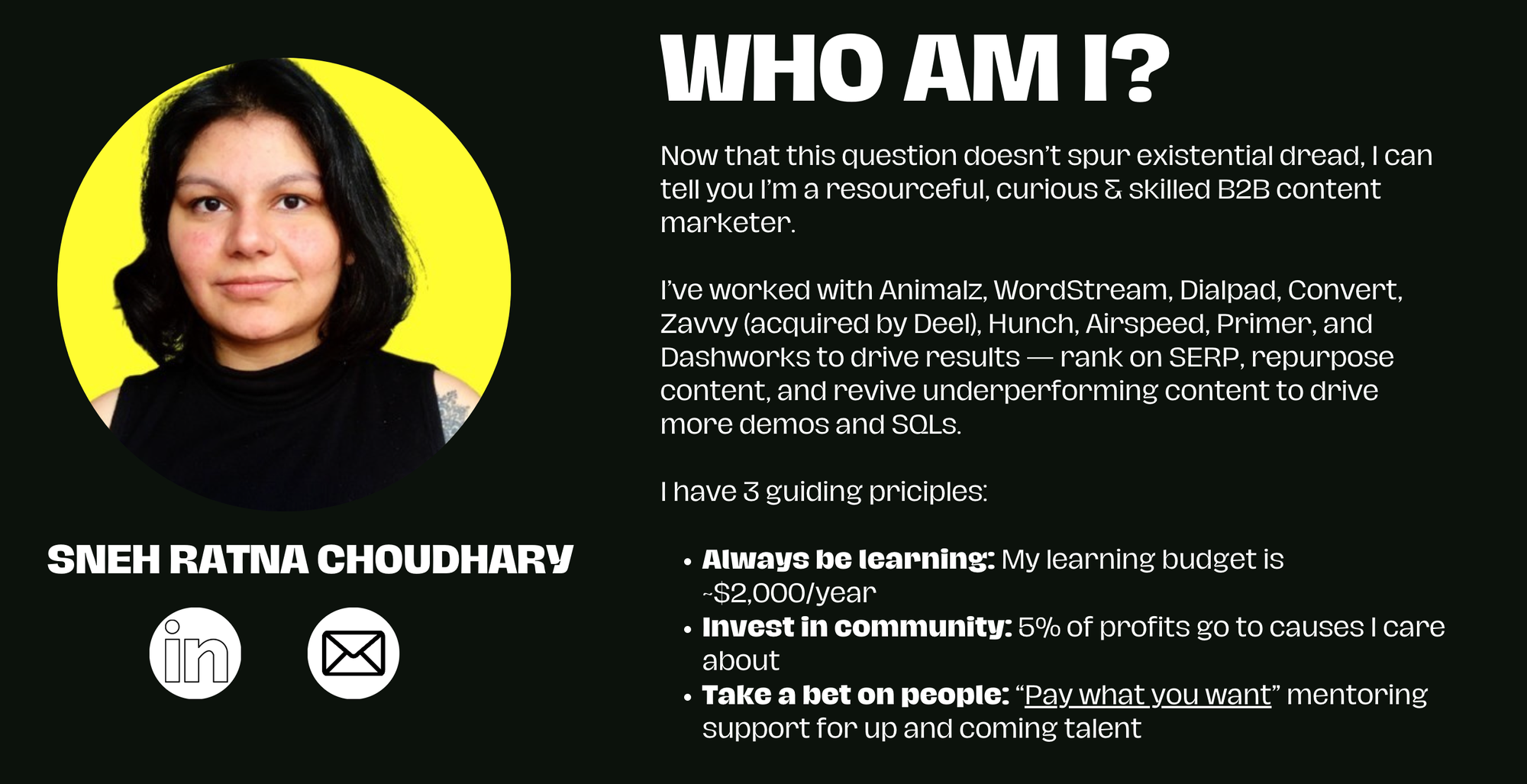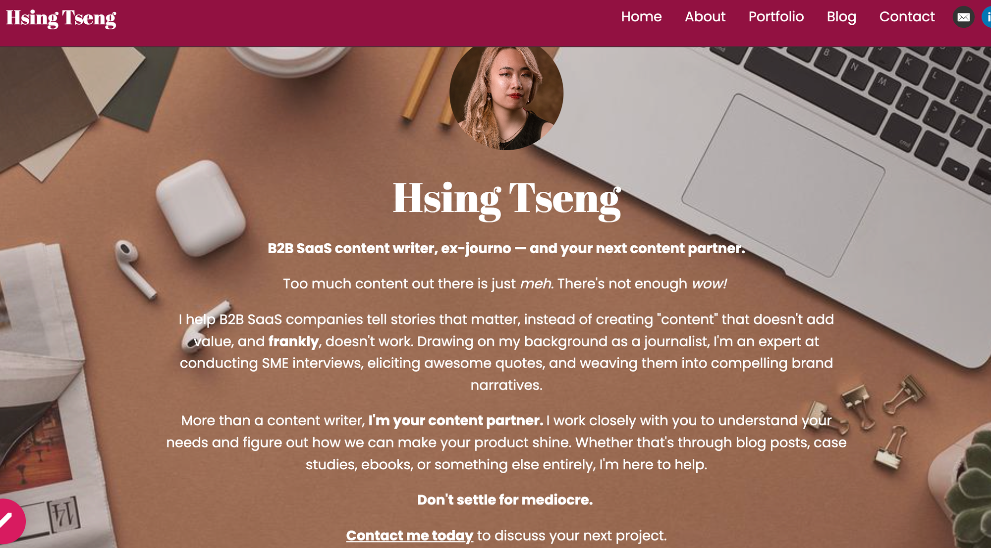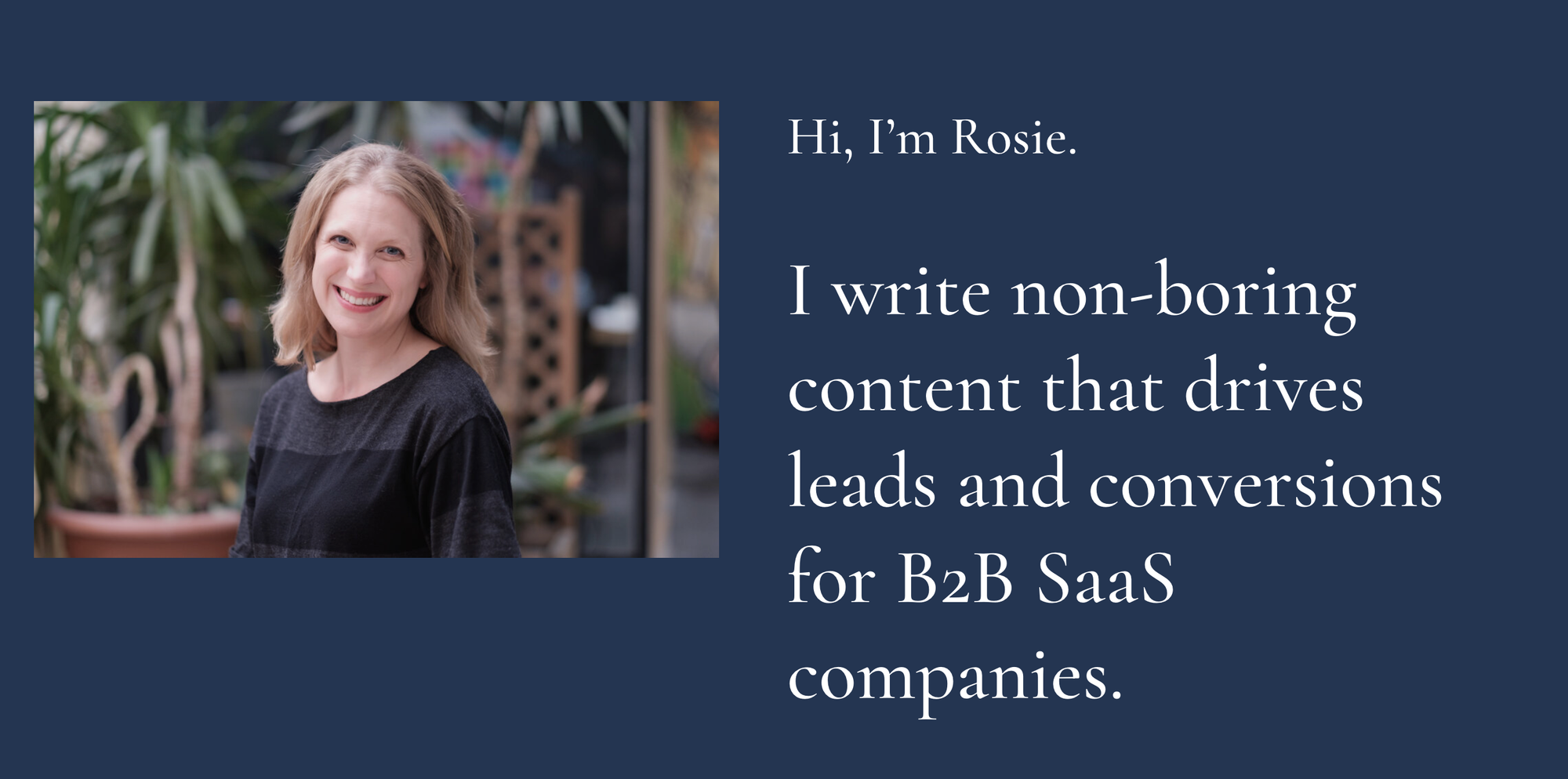 "B2B SaaS content writer, ex-journo — and your next content partner. I help B2B SaaS companies tell stories that matter…whether that’s through blog posts, case studies, ebooks, or something else entirely, I'm here to help.”