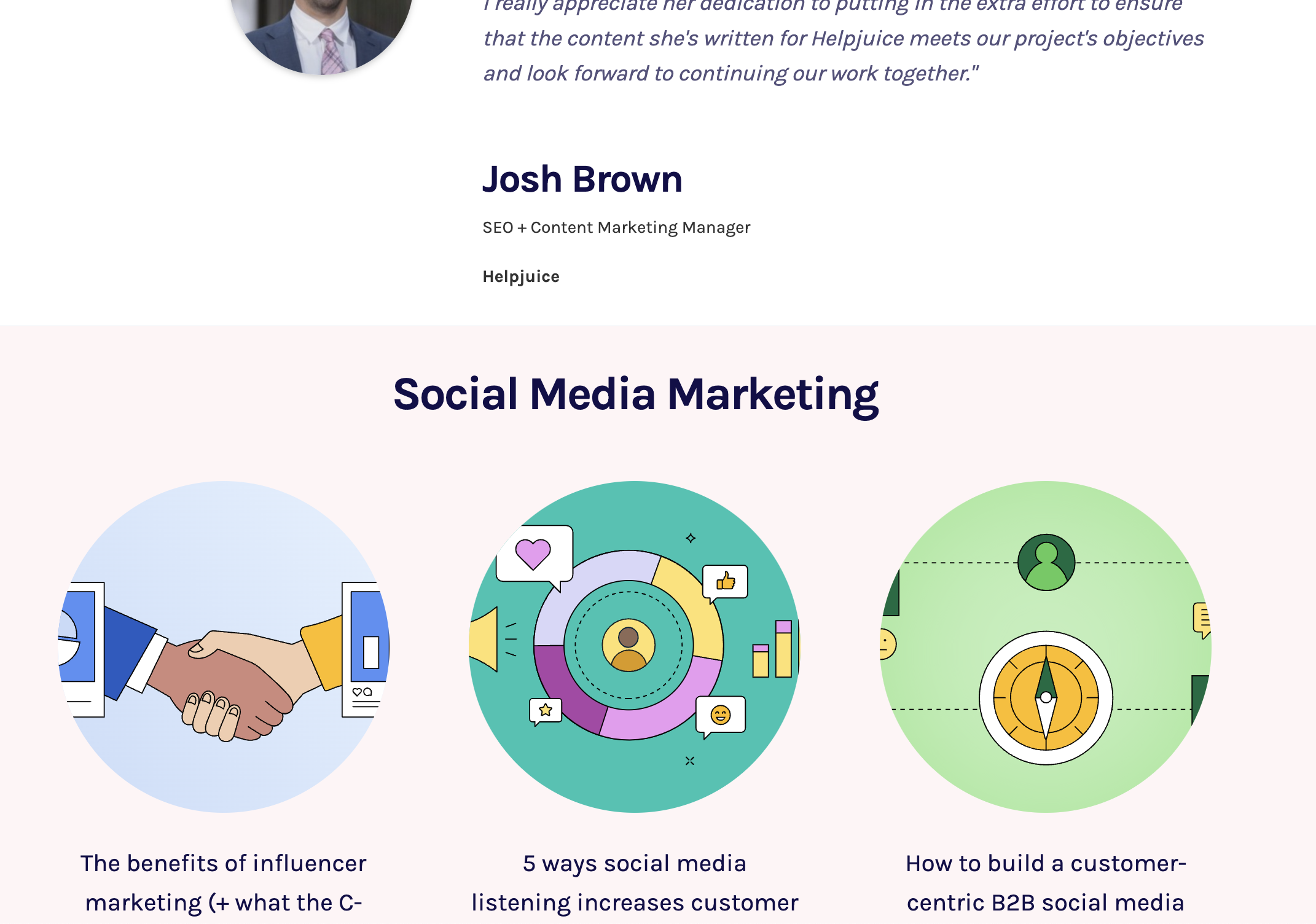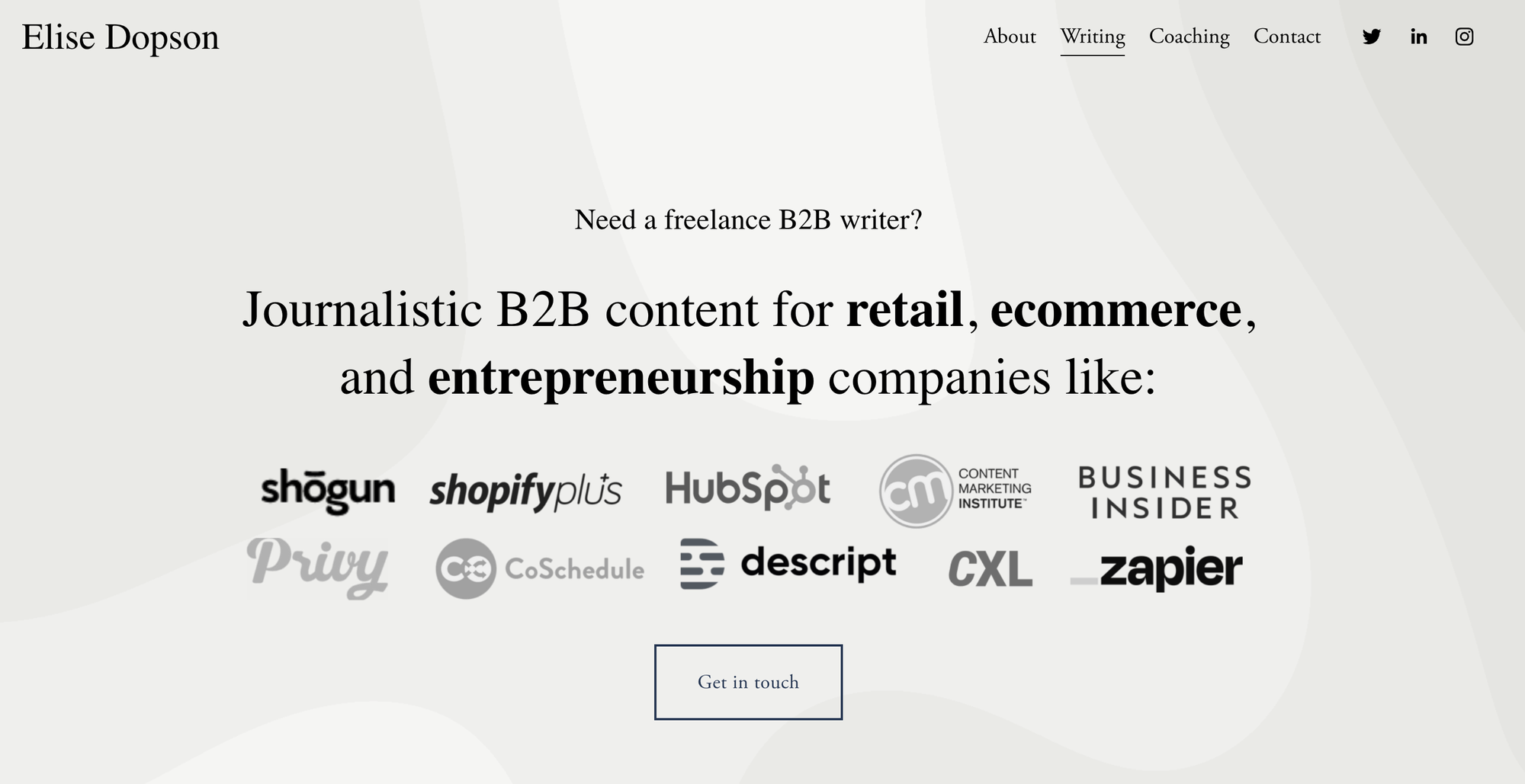 Elise's portfolio combines professionalism and personality to build trust and show that she's a freelance B2B writer worth hiring.