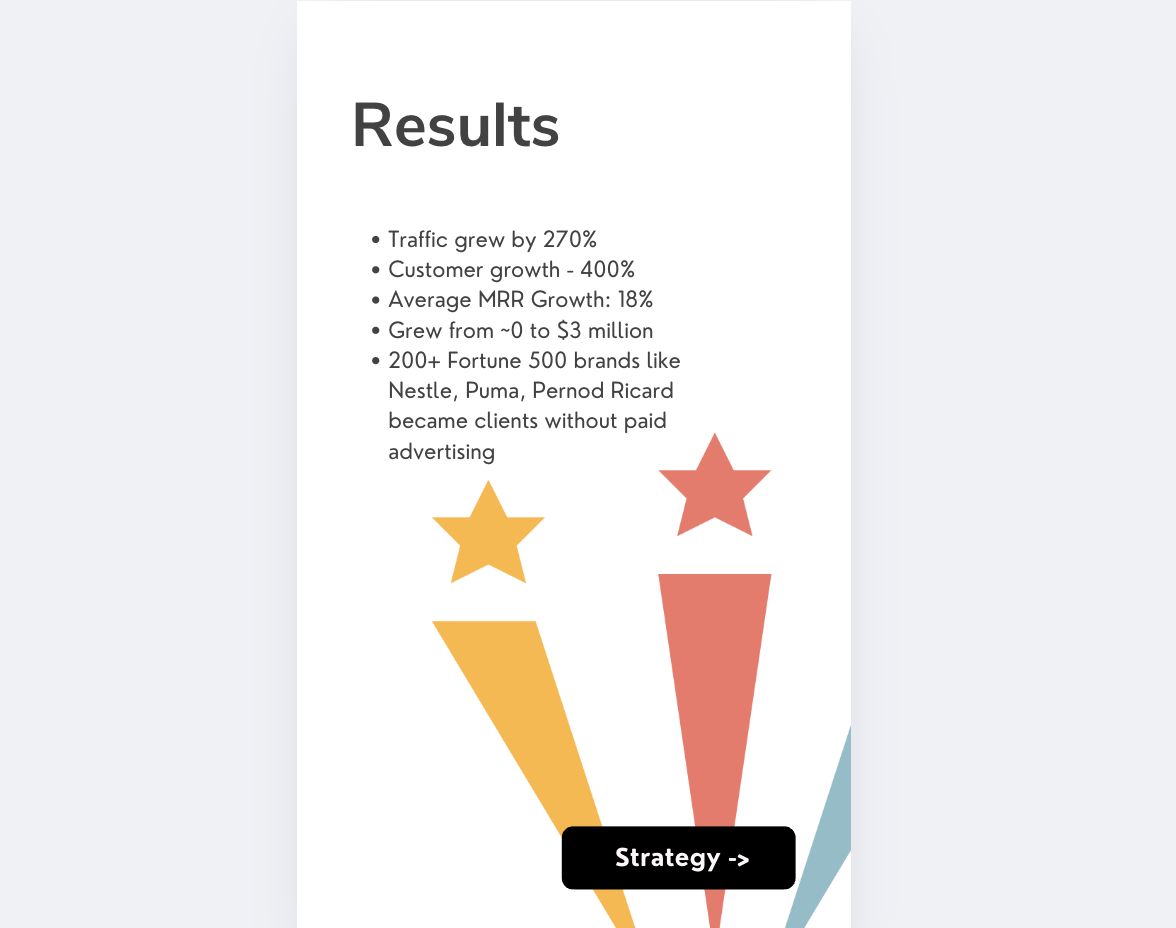 I picked Canva over a regular writing portfolio site because I wanted to do more than just display links. As a content marketer/manager (not just a freelance writer), I wanted to visually highlight outcomes and metrics upfront. This sets expectations — clients see me as an extension of their team who delivers results and loop me in other projects that are higher value than straight up writing blog posts.